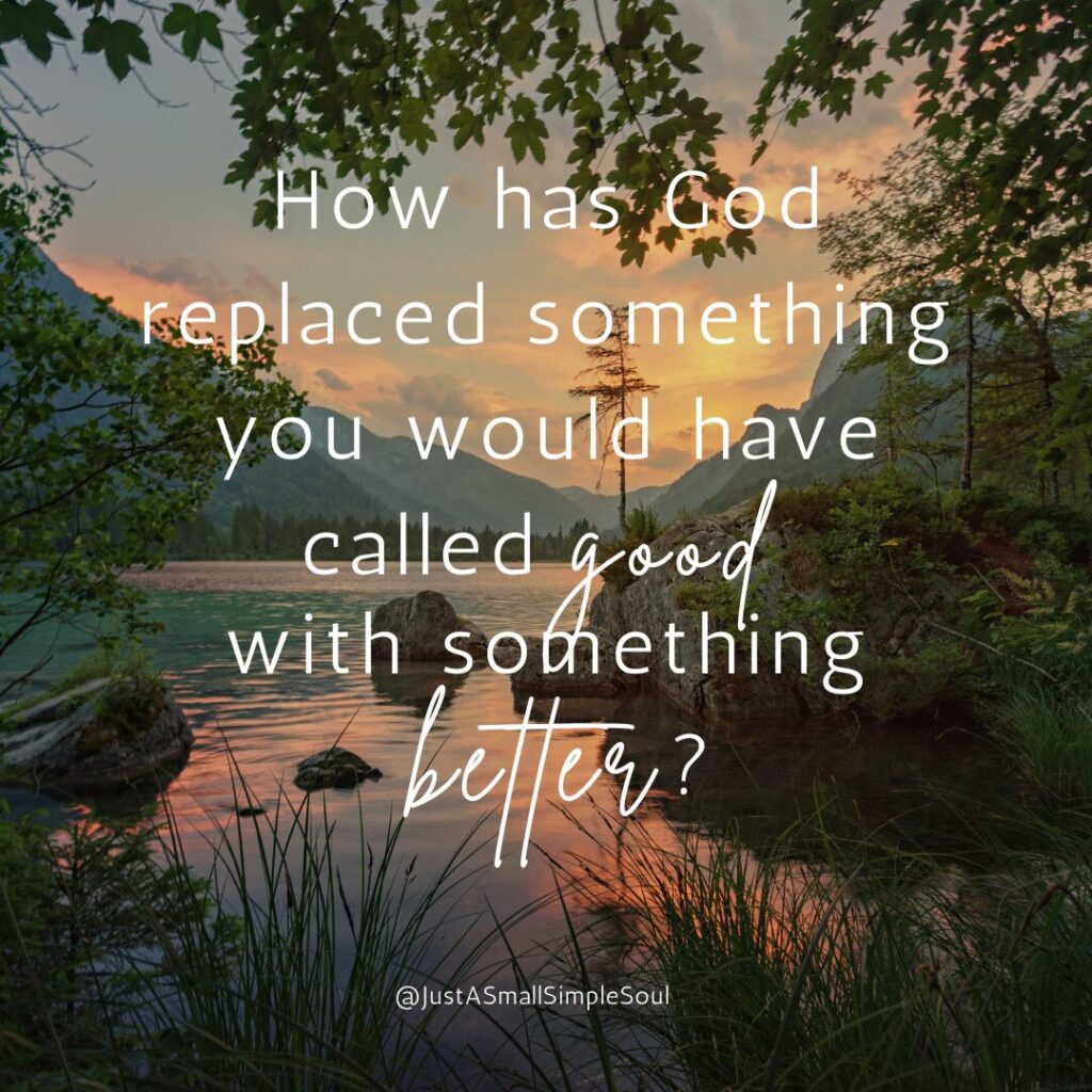 So my challenge to you today? Think on how God has replaced something He called you to lay down—something you would have called good—with something better.