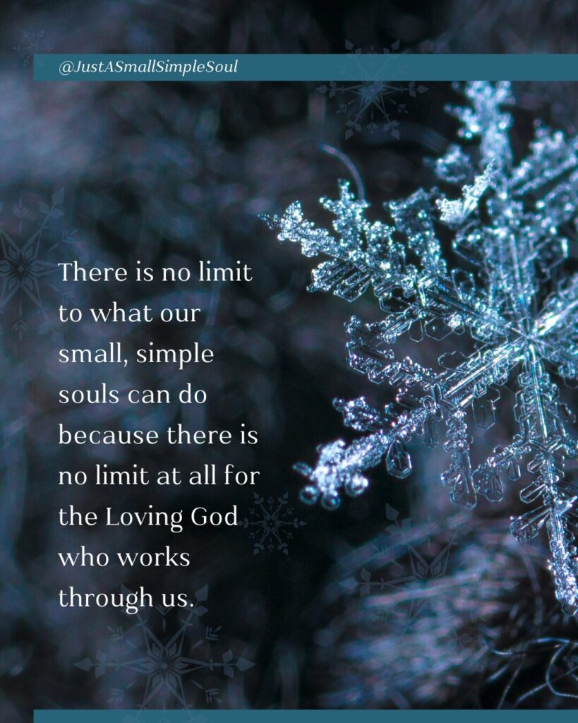 There is no limit to what our small, simple souls can do because there is no limit at all for the Loving God who works through us.